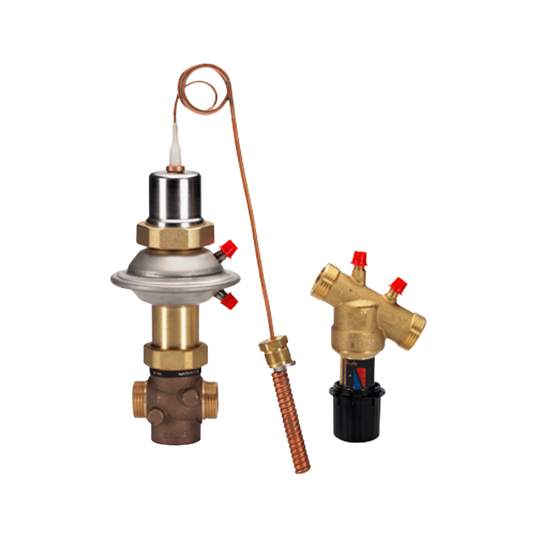 AVTQ är en självverkande flödeskompenserad temperaturregulator som främst används i fjärrvärmesystem med plattvärmeväxlare för momentan produktion av varmvatten. Den stängs med stigande givartemperatur. Den har en permanent tomgångstemperaturinställning på cirka 40°C, som utjämnas av en pilotventil med hjälp av flödeskompensationsprincipen under tappning. Temperaturen för tappning kan ställas in individuellt.